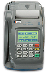The First Data™ FD200 Terminal is a versatile, all-in-one point-of-sale solution. Not only does it accept credit, debit, Electronic Benefits Transfer and gift cards, it also accepts TeleCheck® Electronic Check Acceptance® (ECA) service, which converts paper checks into electronic transactions at the point of sale (POS). This saves time because you won’t have to go to the bank as often.
